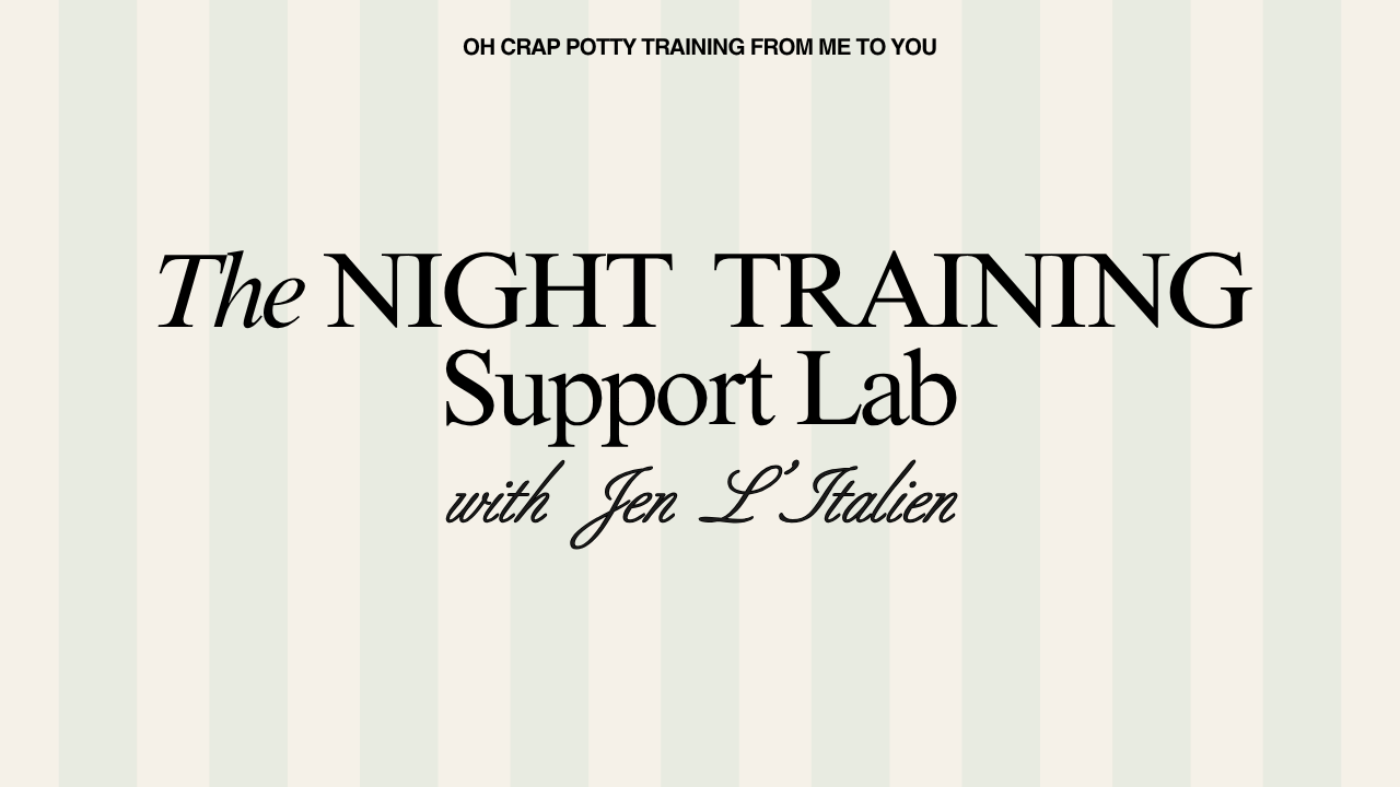 This 30-day support lab is led by a certified Oh Crap Potty Training Consultant with a decade of experience helping thousands of families navigate potty training challenges — including night training.